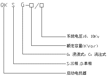 QKSG 型干式鐵芯串聯電抗器型號說明如下: